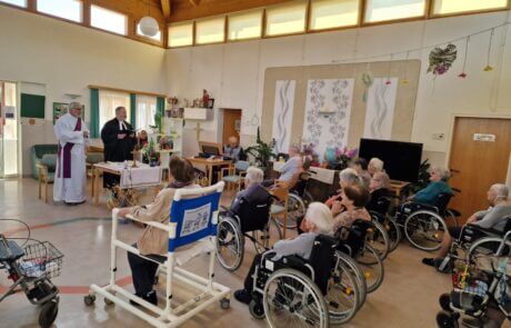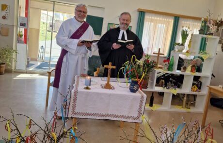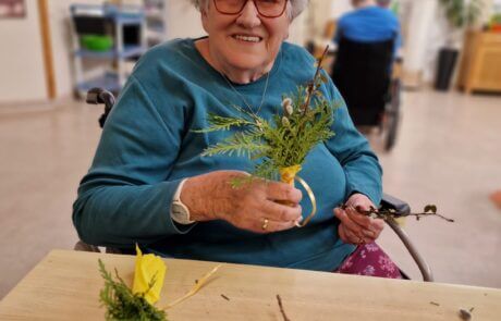 Ostern naht – und damit auch die Palmweihe. Im SeneCura Pflegezentrum Arnoldstein gehört es zur gelebten Tradition, zu diesem Anlass schöne Palmbuschen aus verschiedenen Grünzweigen und Palmkätzchen zu gestalten. Die fertig gebundenen Palmbuschen können sich auf jeden Fall sehen lassen und wurden im Rahmen einer festlichen Stunde geweiht. Die geweihten Palmbuschen schmücken nun die Räume der Bewohner:innen und alle sind sich sicher – nun kann Ostern kommen.