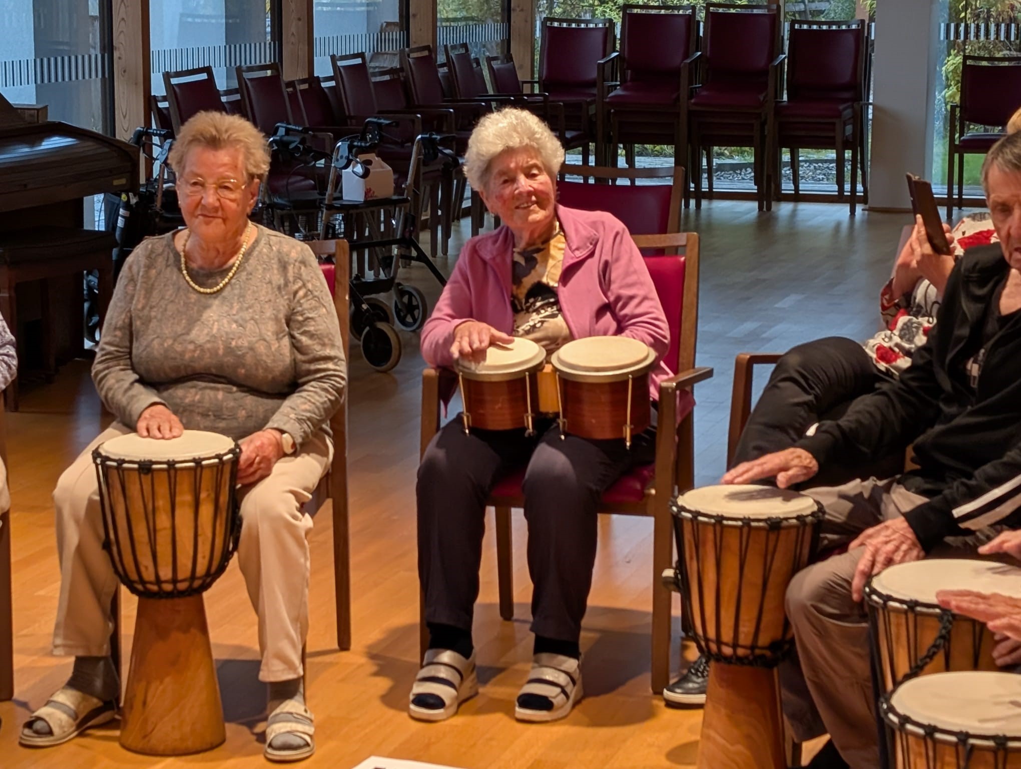 Da Hermann Ortner bereits mehrfach im Haus war, war die Wiedersehensfreude besonders groß. Der Nachmittag endete mit begeistertem Applaus – und der Vorfreude auf den nächsten Trommelbesuch, der sicher wieder für viel Begeisterung sorgen wird.