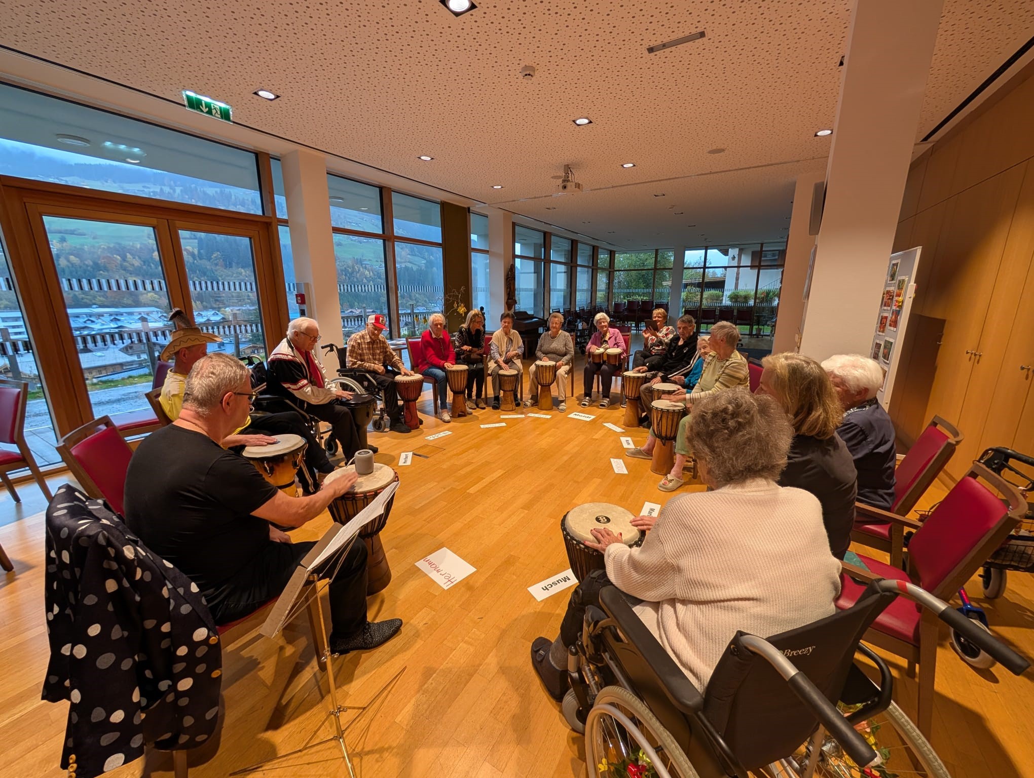 Große Begeisterung herrschte beim jüngsten Trommelnachmittag im SeneCura Sozialzentrum Kirchberg in Tirol, als Hermann Ortner wieder zu Gast war. Mit seinen mitreißenden Rhythmen und bekannten Melodien begeisterte er die Bewohner:innen und sorgte für spürbar gute Laune im ganzen Raum.