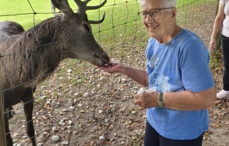 Mit großer Unternehmungslust startete die Urlaubswoche direkt vor der Haustür. Jeden Tag stand ein anderer Höhepunkt auf dem Programm. Den Anfang machte ein Besuch in Minimundus, wo die Bewohner:innen mit Staunen eine Weltreise im Kleinformat unternahmen. Am nächsten Tag ging es über die Grenze nach Italien zum beliebten Markt in Tarvis, wo nach Herzenslust geshoppt wurde – mit dem krönenden Abschluss in einer typisch italienischen Pizzeria, bei der nicht nur der Gaumen, sondern auch die Stimmung auf ihre Kosten kam. Ein weiteres Highlight war die Schifffahrt auf dem Wörthersee, die mit traumhafter Aussicht, Sonnenschein und frischer Brise Urlaubsfeeling pur bot. Tiere zum Anfassen gab es anschließend im Tierpark Rosegg, wo Lamas, Ziegen und andere tierische Bewohner für Freude und Erinnerungen sorgten. Den Ausklang der Woche bildete der Besuch am Pyramidenkogel – die atemberaubende Aussicht über Kärntens Seenlandschaft ließ so manches Herz höherschlagen. „Wir hatten wirklich eine wunderschöne Woche. So viele Eindrücke, nette Gespräche und einfach einmal etwas anderes als der Alltag, das hat richtig gutgetan“, erzählt Bewohnerin Maria Gatej zufrieden. „Besonders schön war auch, dass wir so viel gelacht haben – wie früher im Urlaub.“