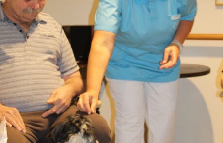 Hundetherapie mit Sabine Oberhauser von „Herzenshunde“ und den beiden Gästen Bruno Rumpold und Horvath Alfred