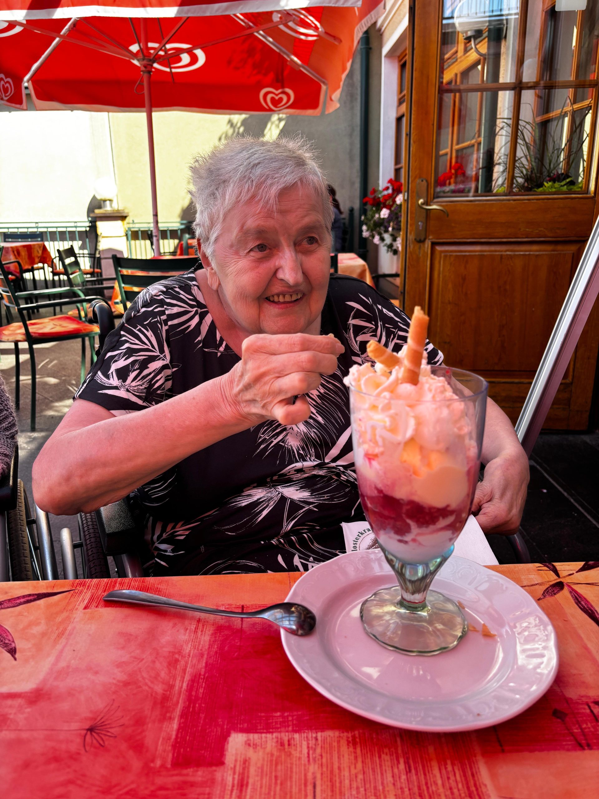 Die Bewohner:innen aus Kirchberg am Wechsel genossen bei strahlendem Sonnenschein einen wunderbaren Ausflug nach Maria Schutz. Dort wurde die wunderschöne Kirche besichtigt, bevor es zur Stärkung die berühmten Riesenkrapfen gab – so lecker, dass sie im Nu verputzt waren. Natürlich durfte auch ein erfrischendes Eis nicht fehlen, um der sommerlichen Hitze zu trotzen. Ein herrlicher Tag voller Genuss, Gemeinschaft und schönen Momenten.