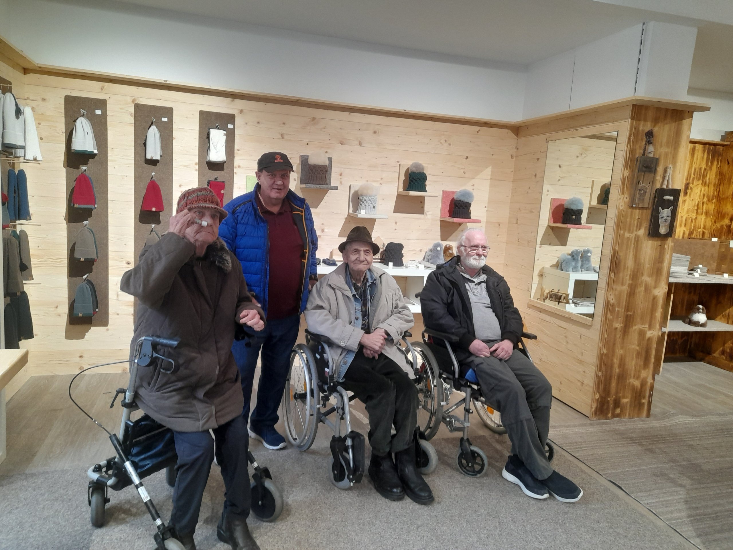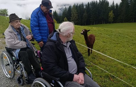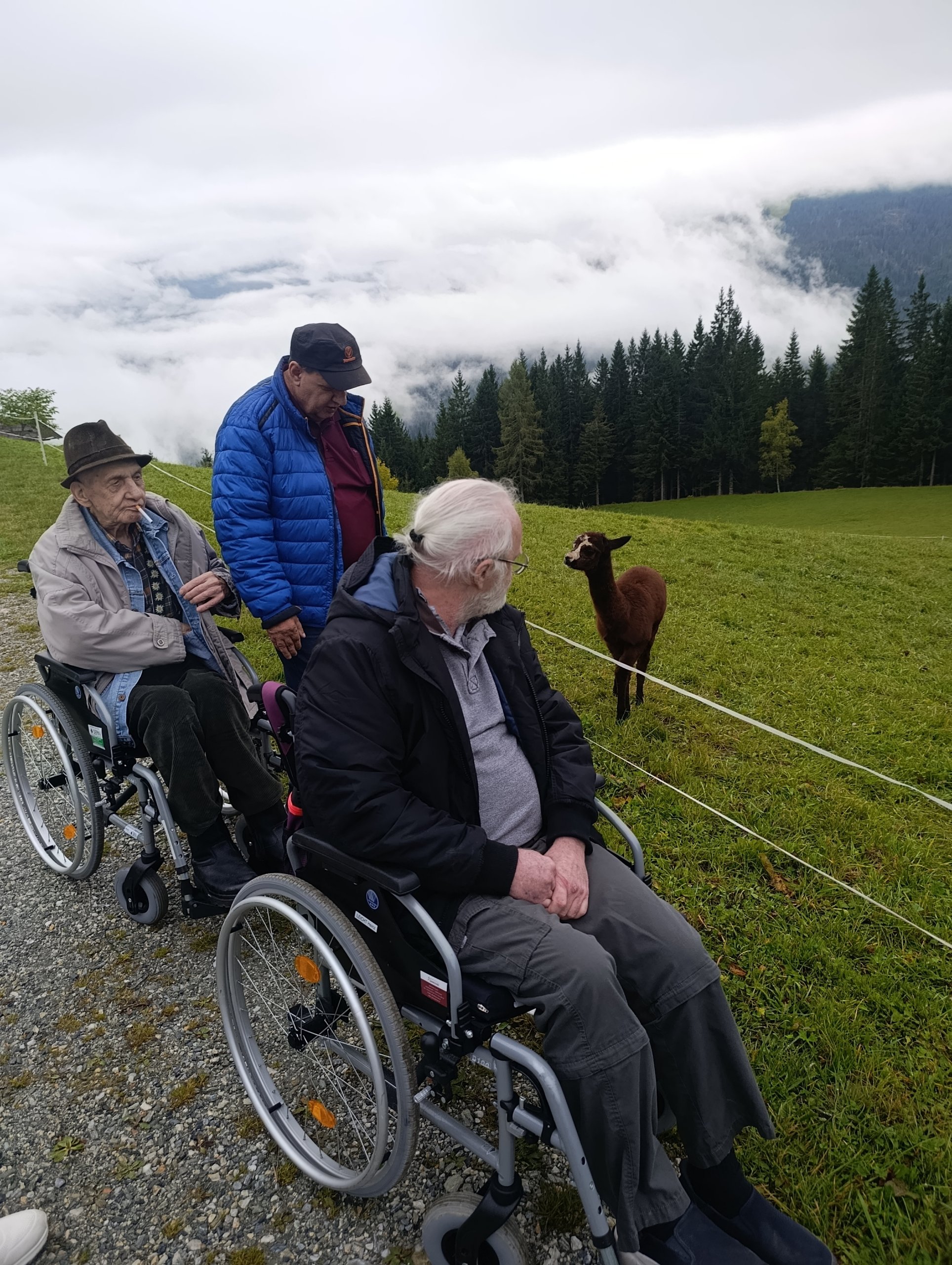 Das besondere Highlight des Urlaubsaustausches war die Alpakafarm, bei der die Bewohner:innen die Alpakas streicheln durften. Außerdem wurde ihnen die hauseigene Fabrik gezeigt, in der die Wolle verarbeitet wird und anschließend fuhren sie noch ins Alpakageschäft im Tal. Dort gab es hochwertige Decken, Mützen, Stirnbänder, Socken und so manch kuscheliger Artikel zu Kaufen.
