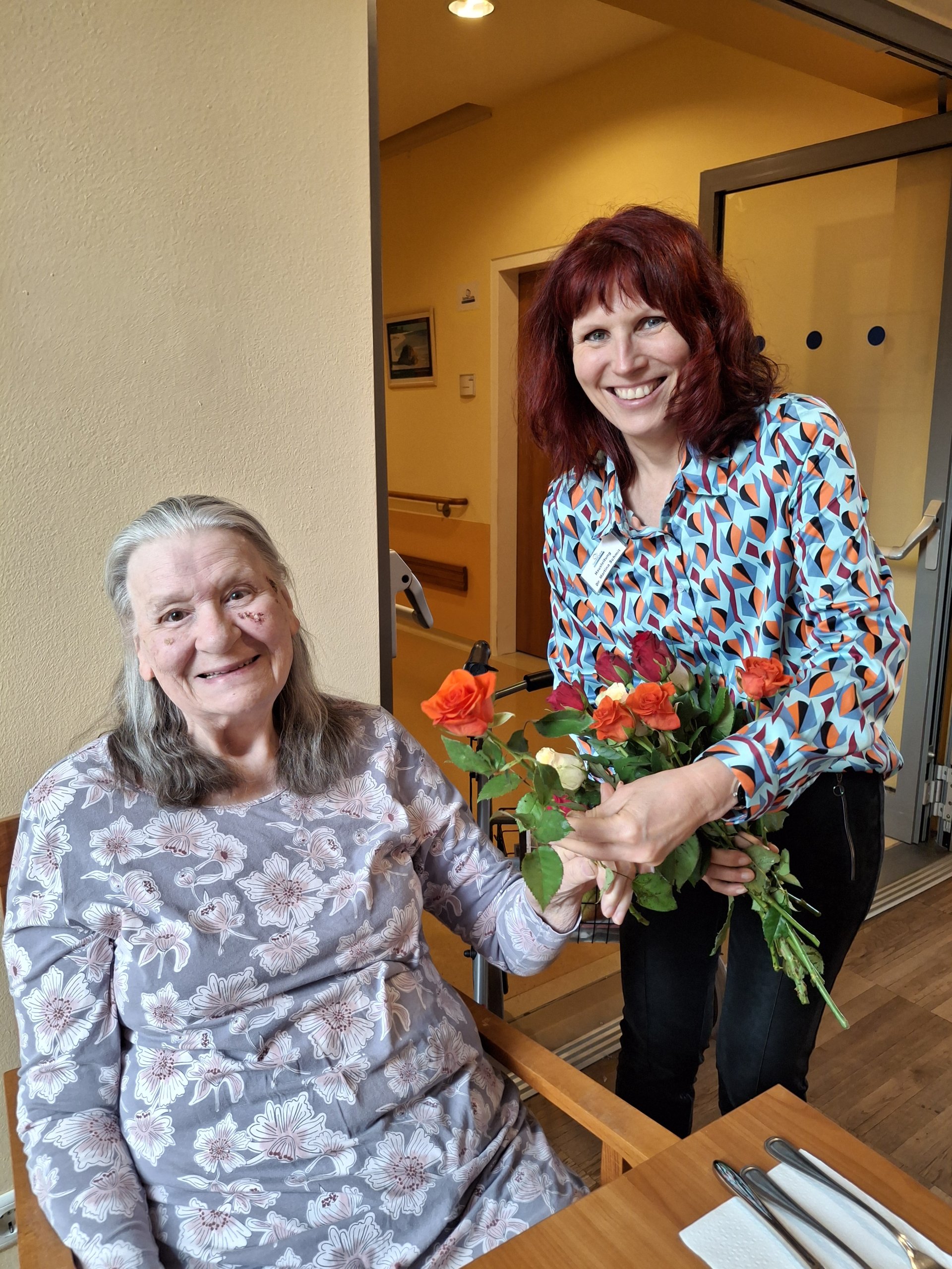 Auch die Mitarbeiter:innen nahmen die bunten Rosen gerne entgegen und freuten sich über die nette Geste und die lieben Worte der Direktorin.