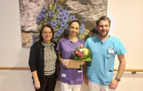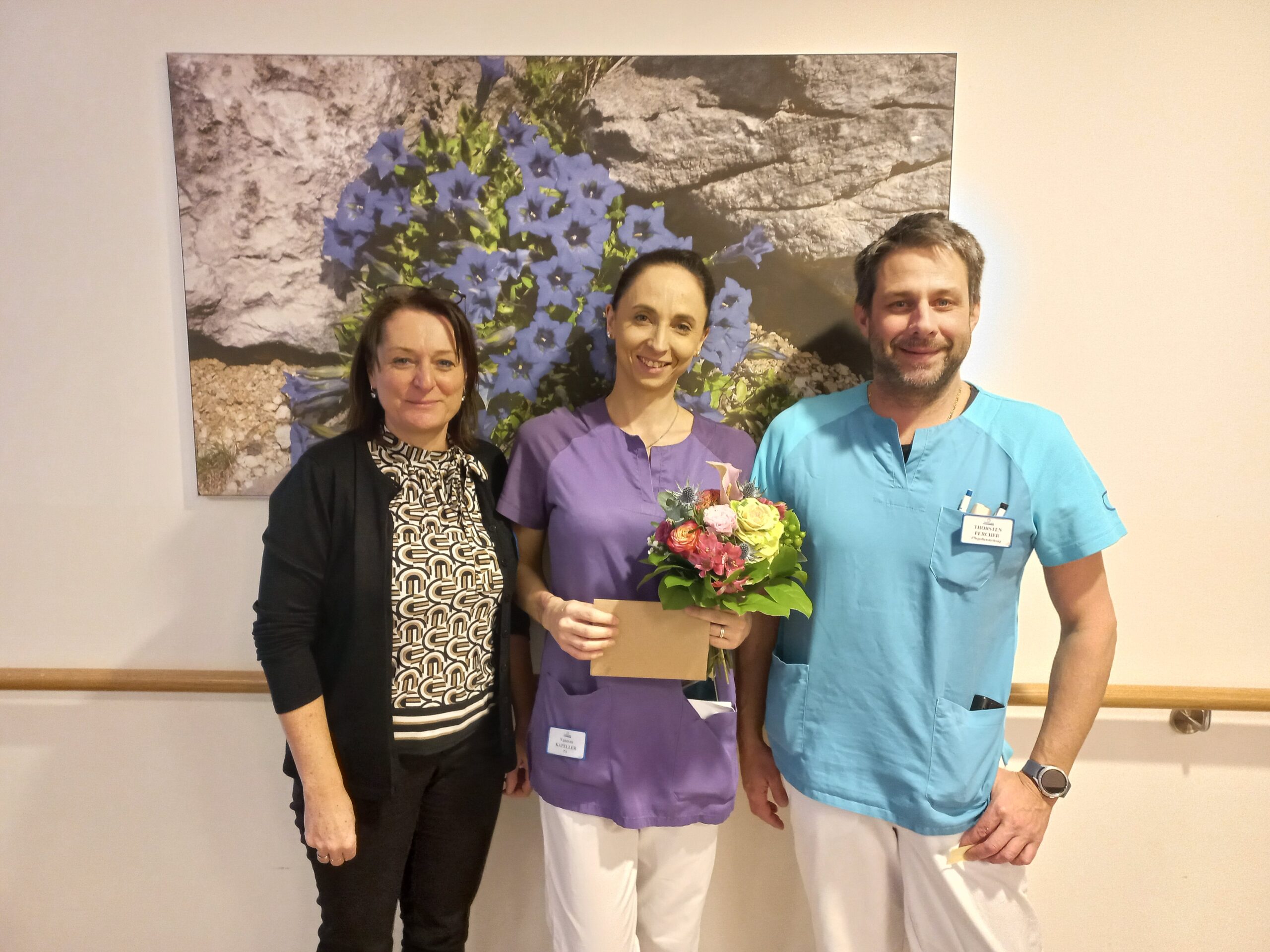 Im SeneCura Pflegezentrum Vassach gab es wieder einen Grund zu feiern. Das gesamte Team des Hauses gratuliert der Kollegin, Vanessa Kapeller, zur erfolgreich abgeschlossenen Ausbildung zur Pflegeassistentin. Anlässlich dieses Ausbildungsabschlusses wurde Vanessa ein wunderschöner Blumenstrauß von Hausleitung Bettina Kreuzer und Pflegedienstleiter Thorsten Fercher überreicht.