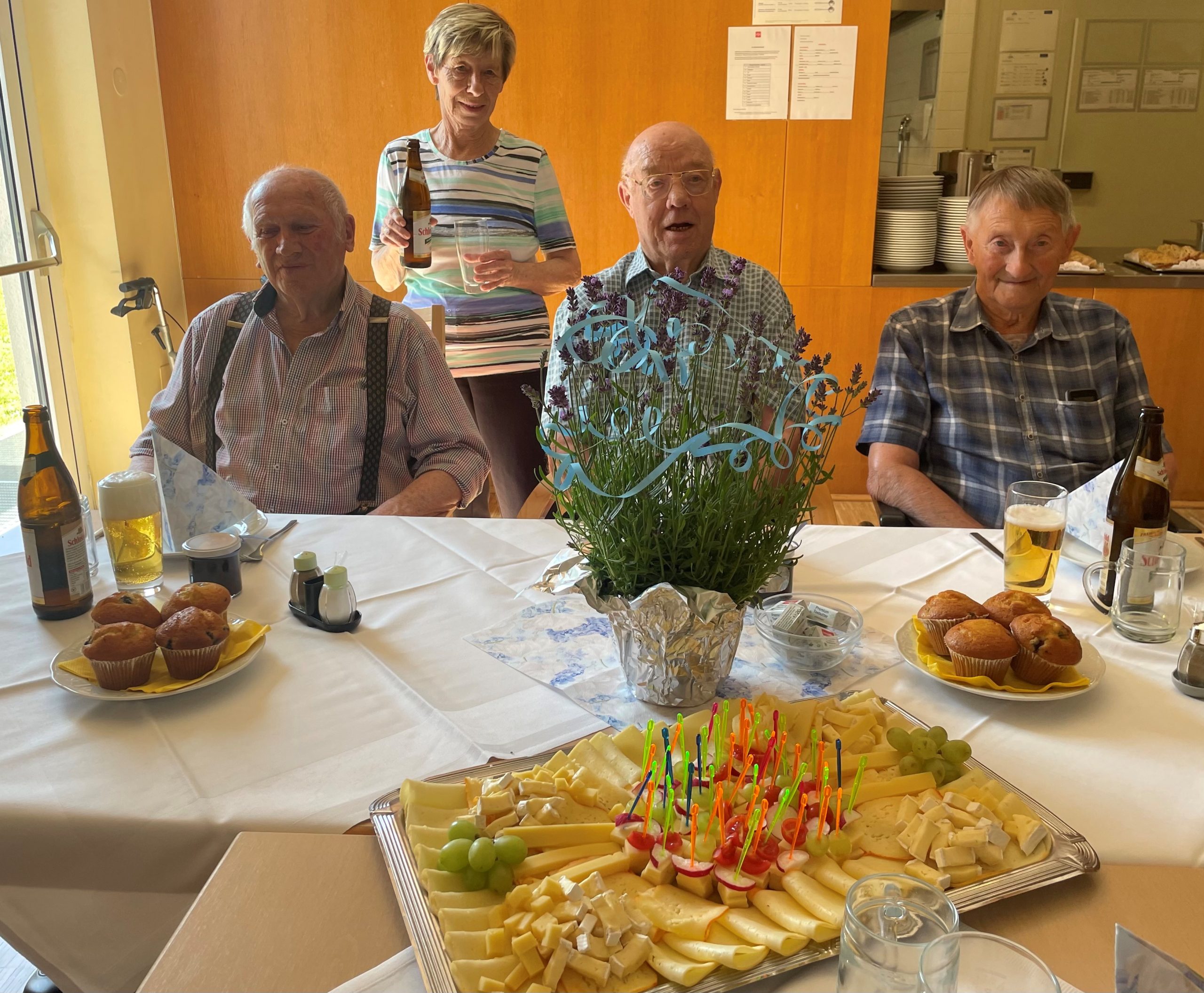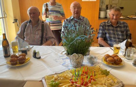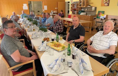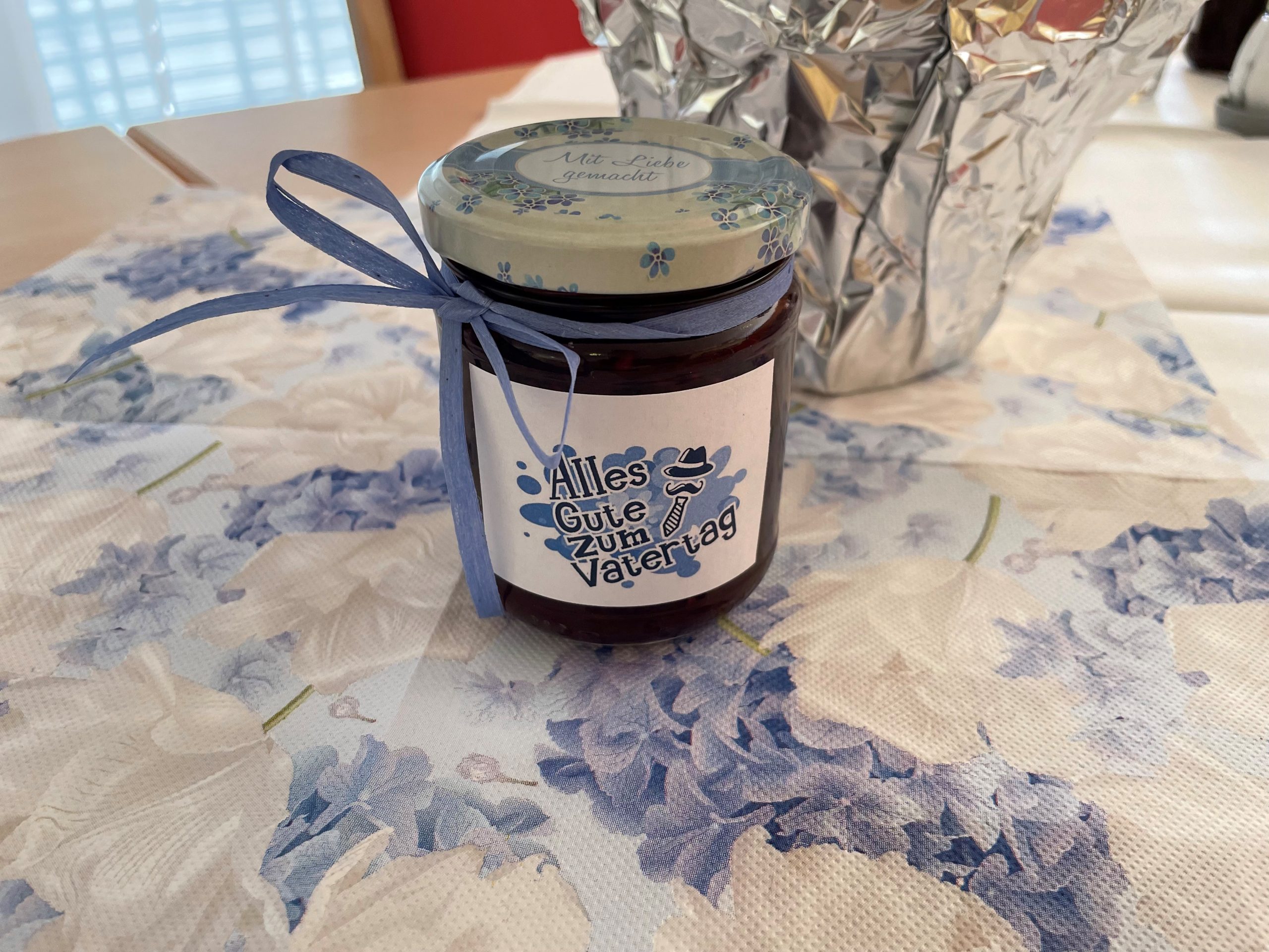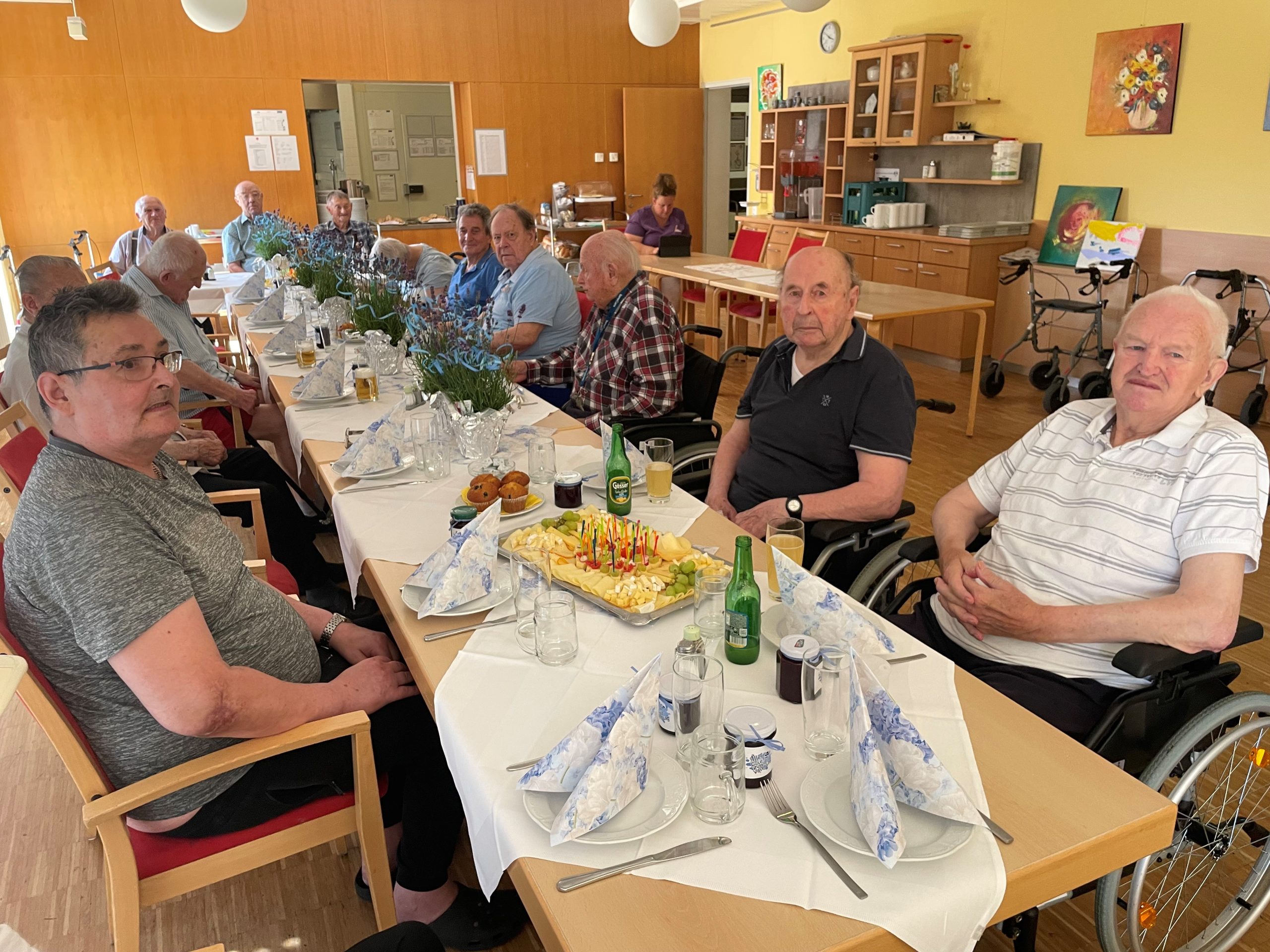 Es wurde ein liebevoll gedeckte Tafel für 18 Personen gestaltet. Zur Überraschung gab es eine gut ausgewählte Vielfalt an Käsesorten dazu köstliches gekühltes Bier in vielen Varianten. Überraschung war gelungen und fand großen Anklang bei unseren Gästen. Ein süßes Präsent zum Vatertag ein Glas Marmelade stand für jeden bereit. Die Überraschung zum Vatertag war gelungen. Bewohner Franz Rumpf meinte „Das war die beste Überraschung.“