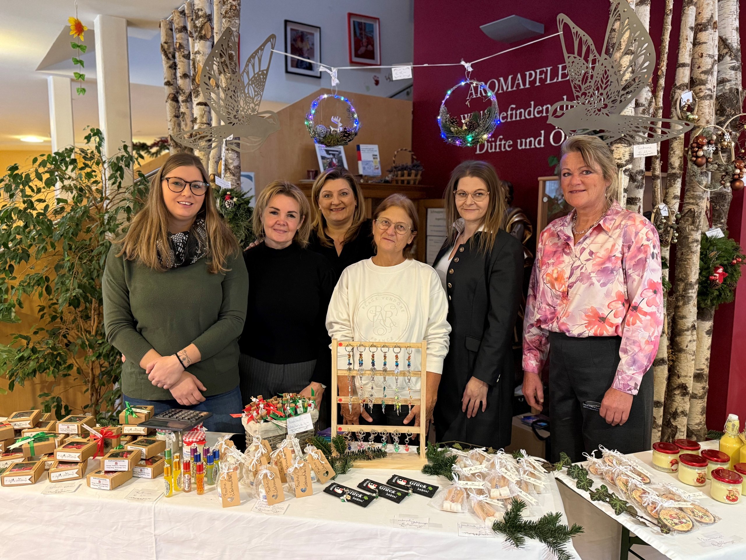 Heuer wurde von der Aromagruppe des SeneCura Bad St. Leonhard unter der Leitung von Sabrina Friesacher wieder ein Weihnachtsbasar organisiert der das gesamte Haus mit vorweihnachtlicher Stimmung erfüllt hat. Sabrina hat sich über mehrere Wochen um die Planung gekümmert – und man hat in jeder Ecke gespürt, wie viel Herzblut darin steckte. Für uns im Haus ist die Aromagruppe eine große Bereicherung. Sie schenken unseren Bewohnerinnen und Bewohnern schöne Momente, angenehme Düfte, Ruhe und Wohlbefinden – und umso mehr hat es uns gefreut, dass sie diesmal auch der gesamten Gemeinde etwas zurückgeben konnten. Der Basar war wunderbar besucht. Viele regionale Aussteller waren dabei, darunter das Honigatelier Vallant-Friesacher, das mit seinen Köstlichkeiten großen Anklang fand. Auch die Perchtengruppe „The Dark Hellfaces“ war vertreten und hat uns mit besonderen Zirbenholz-Produkten überrascht. Für die kleinen Gäste gab es eine liebevoll gestaltete Bastelecke, in der fleißig gemalt, geklebt und gelacht wurde. Und natürlich hat uns der Besuch von Stadtrat Eduard Mitterbacher und Bundesrätin Claudia Arpa sehr gefreut – ein schönes Zeichen der Wertschätzung für das Engagement unserer Mitarbeiterinnen und Bewohner. Es war ein Tag, der gezeigt hat, wie viel möglich ist, wenn viele Menschen zusammenhelfen und sich mit Herz engagieren. Ein großes Danke an alle Mitwirkenden, Aussteller und Besucher – und vor allem an unsere Aromagruppe, die mit diesem Basar vielen Menschen, jung wie alt, eine wunderschöne Zeit geschenkt hat.