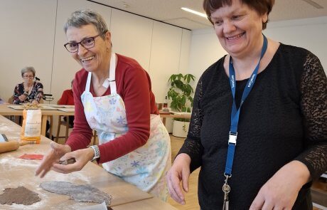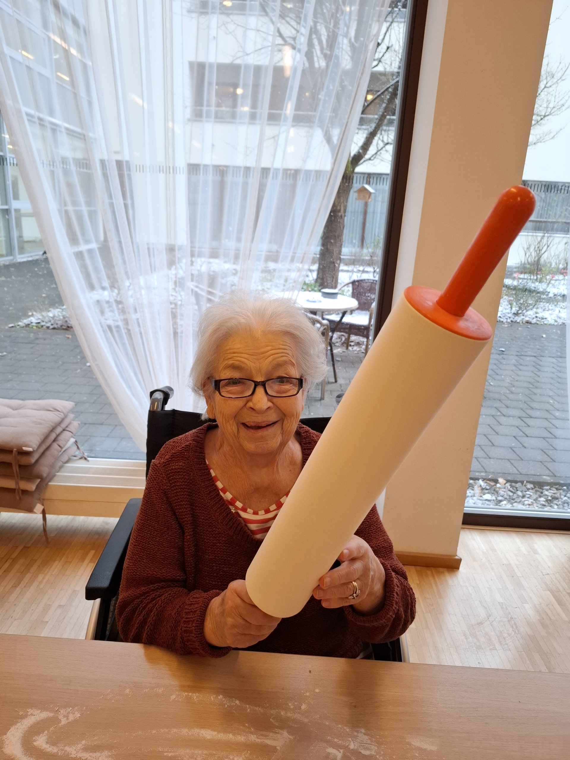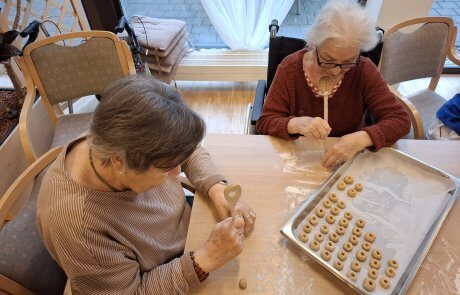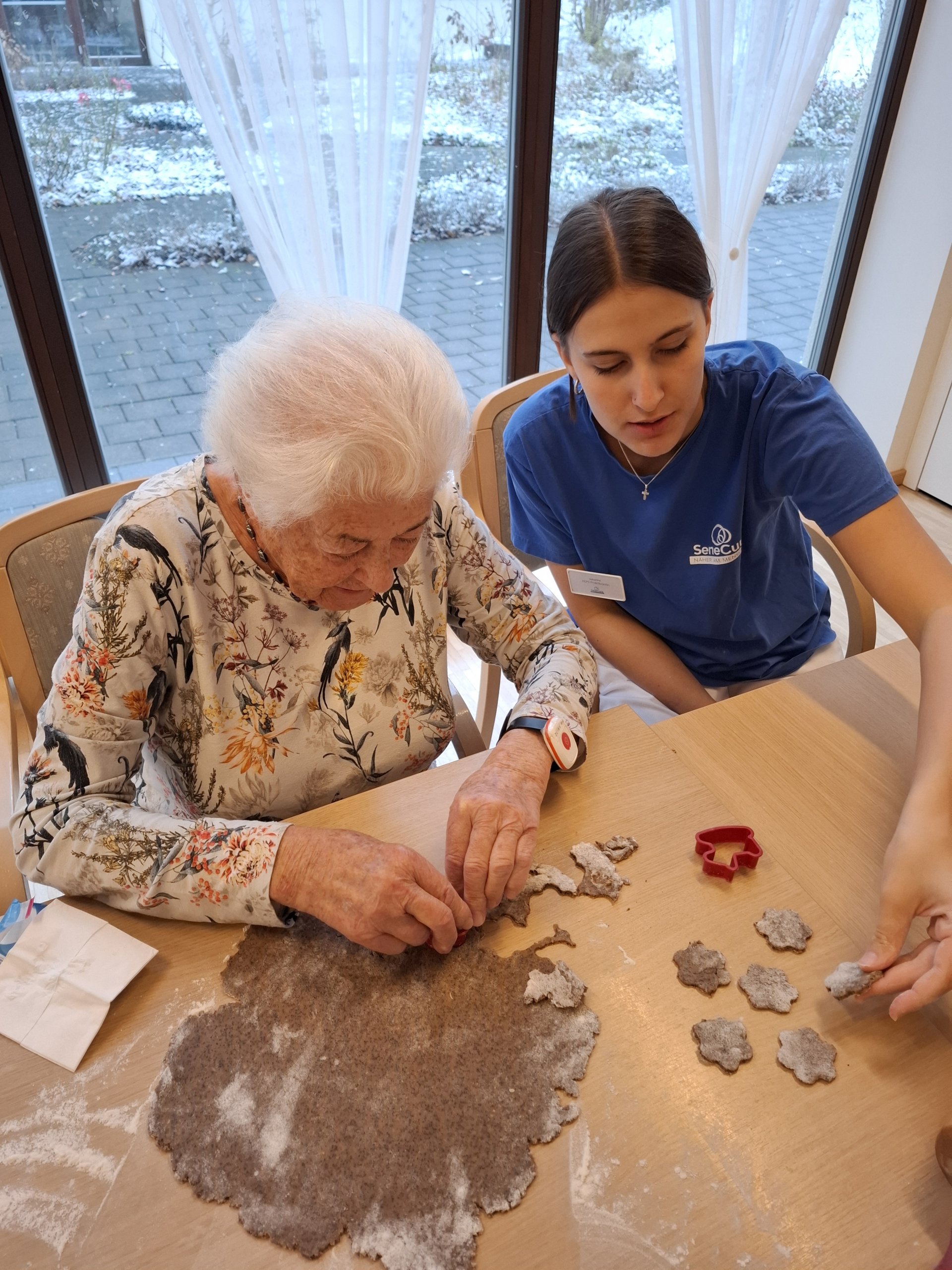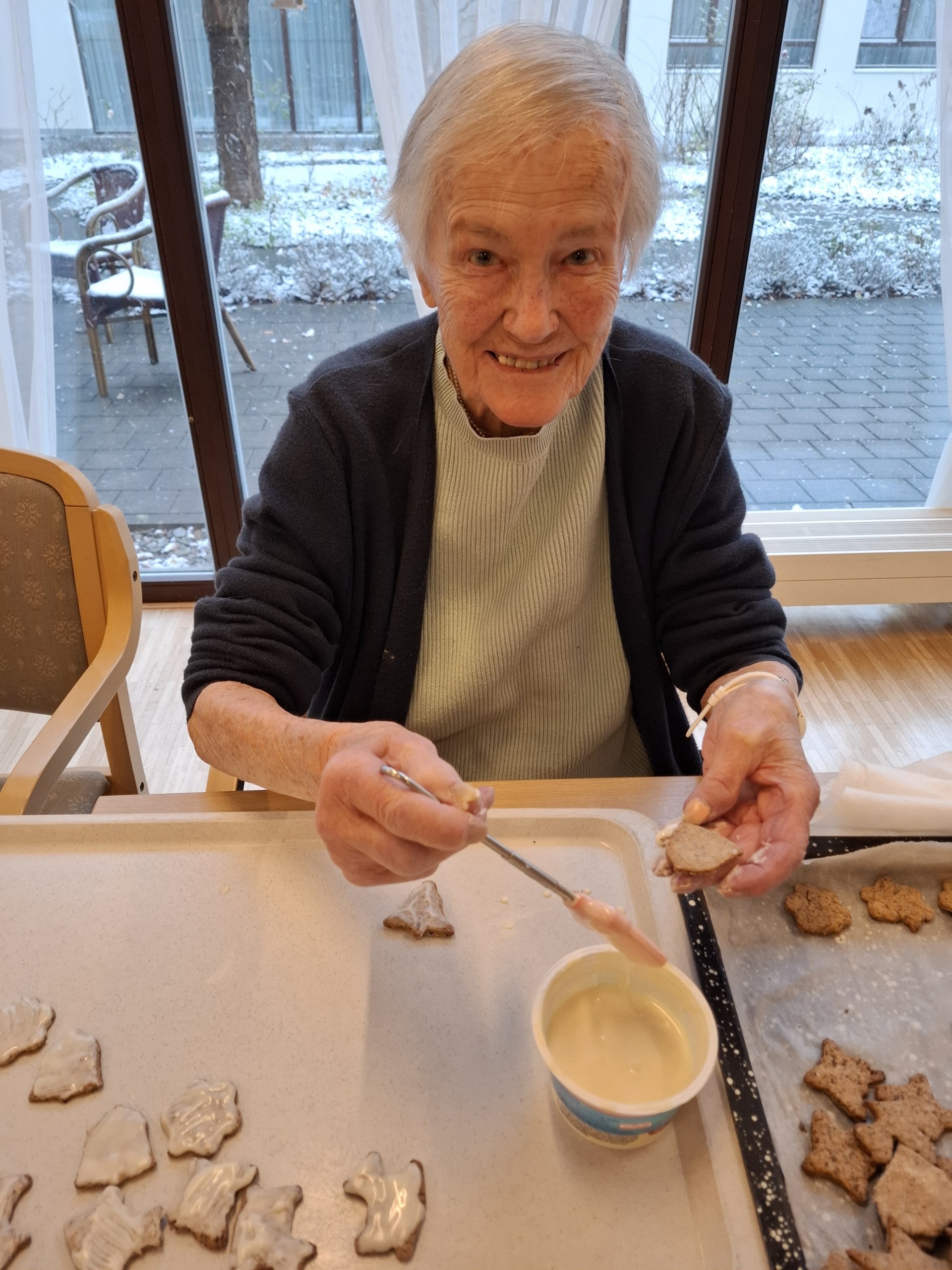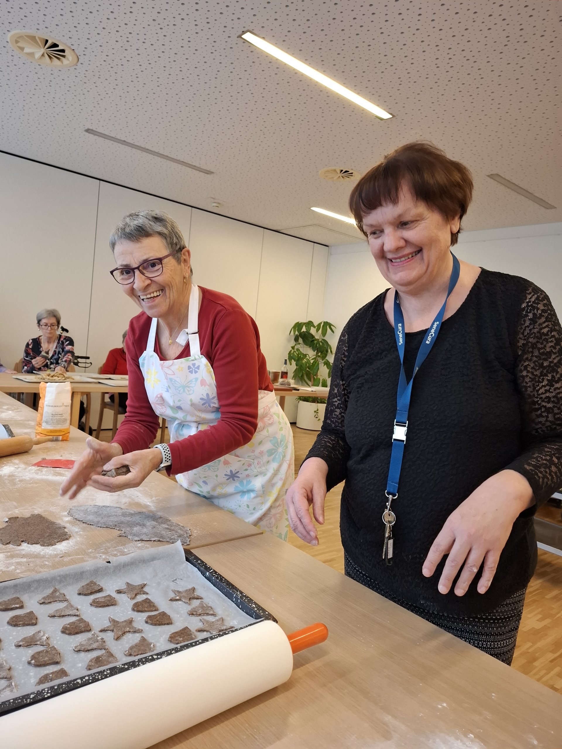 Elfi Brändle und ihr engagiertes Wichtel-Team begleiteten die Bewohner:innen beim Backen und sorgten für eine fröhliche, herzliche Atmosphäre. Musikalische Klänge und eine winterliche Stimmung machten den Nachmittag besonders gemütlich – und die Arbeit ging wie von selbst.