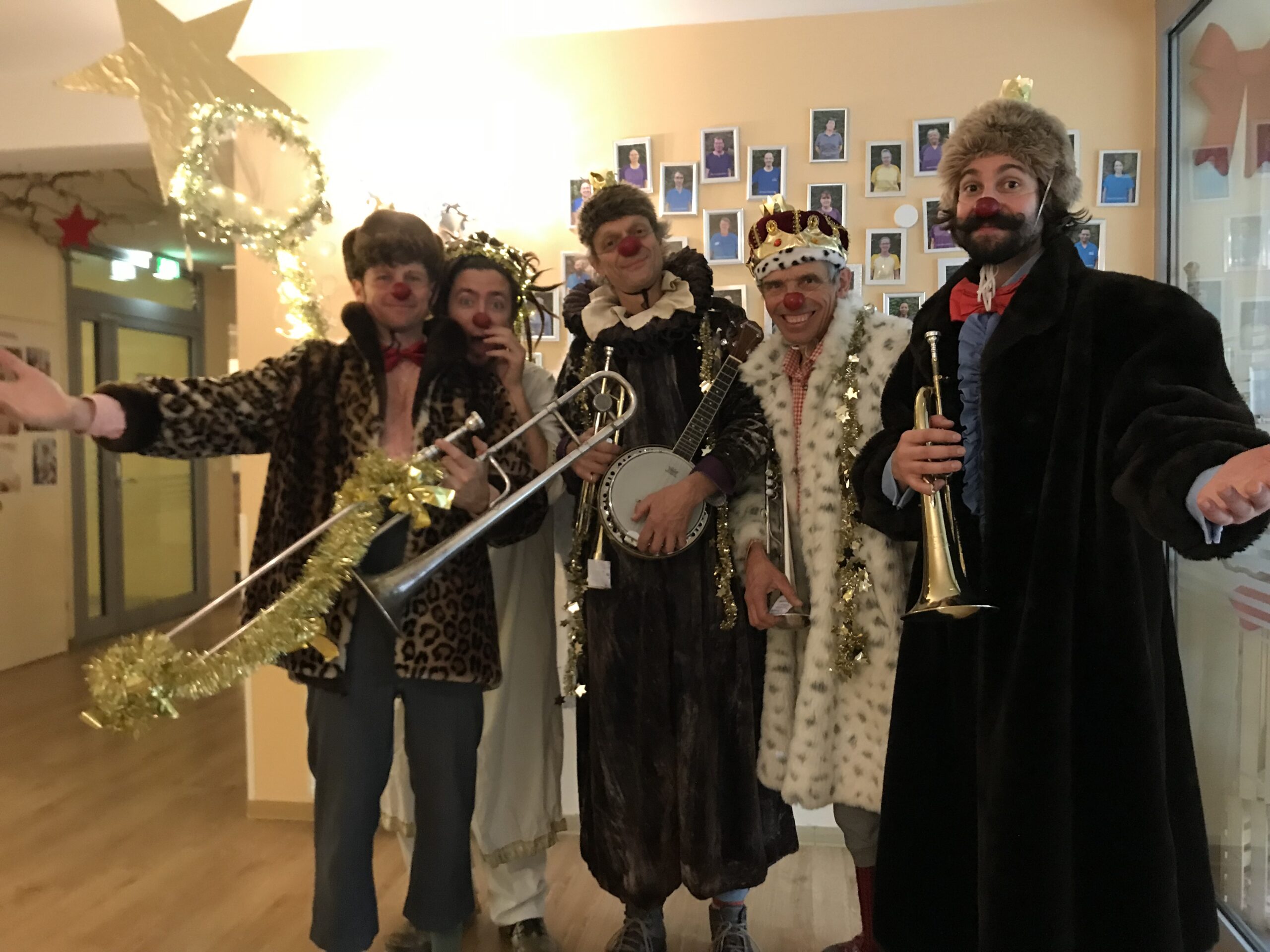 Mitte Dezember erhielt das SeneCura Sozialzentrum Unterpremstätten einen besonderen Besuch. Fünf ROTE NASEN Clowns kamen ins Haus, um den Bewohner:innen verschiedenste Weihnachtslieder mit ihren Blechinstrumenten vorzuspielen. Die Weihnachtsgeschichte rundete das besondere Konzert ab, das eine fröhliche, ausgelassenen und vorweihnachtliche Stimmung ins Haus brachte. Vielen Dank!
