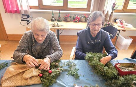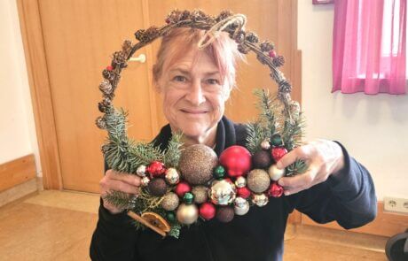 Gemeinsam mit dem engagierten Betreuer:innenteam und mit viel Herz wurde der Bastel-Nachmittag ein voller Erfolg. Neben den schönen Ergebnissen zählte vor allem das Miteinander. „Unsere Bewohner:innen schätzen solche gemeinsamen Aktivitäten sehr. Es stärkt das Gemeinschaftsgefühl und bringt viel Freude in den Alltag,“ betont Hausleiter Reinhard Brosmann. „Umso schöner ist es dann, wenn dabei auch noch so schöne Dekorationen entstehen, mit denen wir das ganze Haus weihnachtlich schmücken können“. Weihnachtlichen Melodien im Hintergrund sowie Punsch und Lebkuchen rundeten den gelungenen Nachmittag ab. So wurde das Haus nicht nur optisch durch die liebevoll gestalteten Werke, sondern auch durch den herrlichen Duft von Tannengrün in ein kleines Weihnachtsparadies verwandelt.