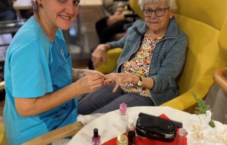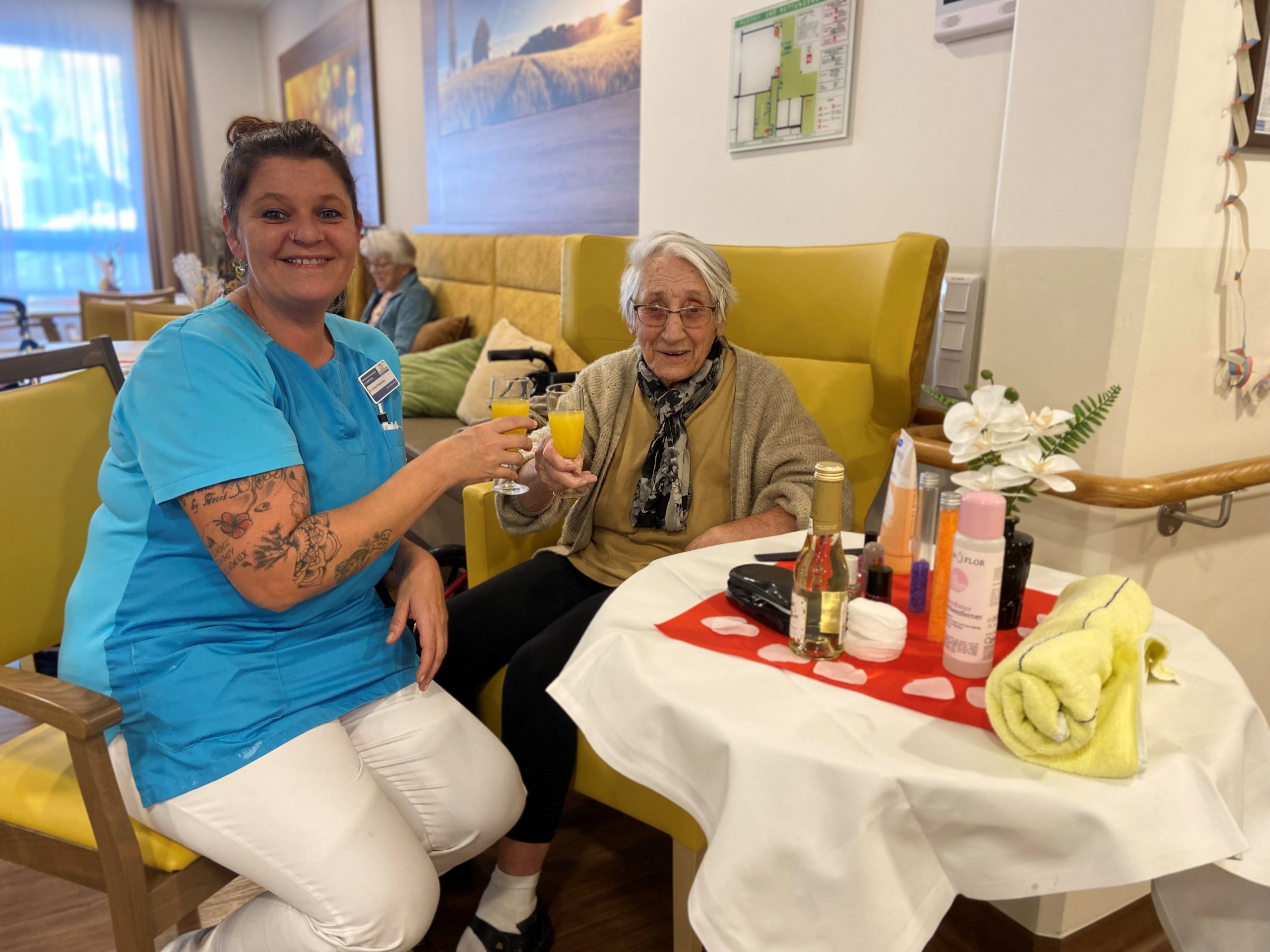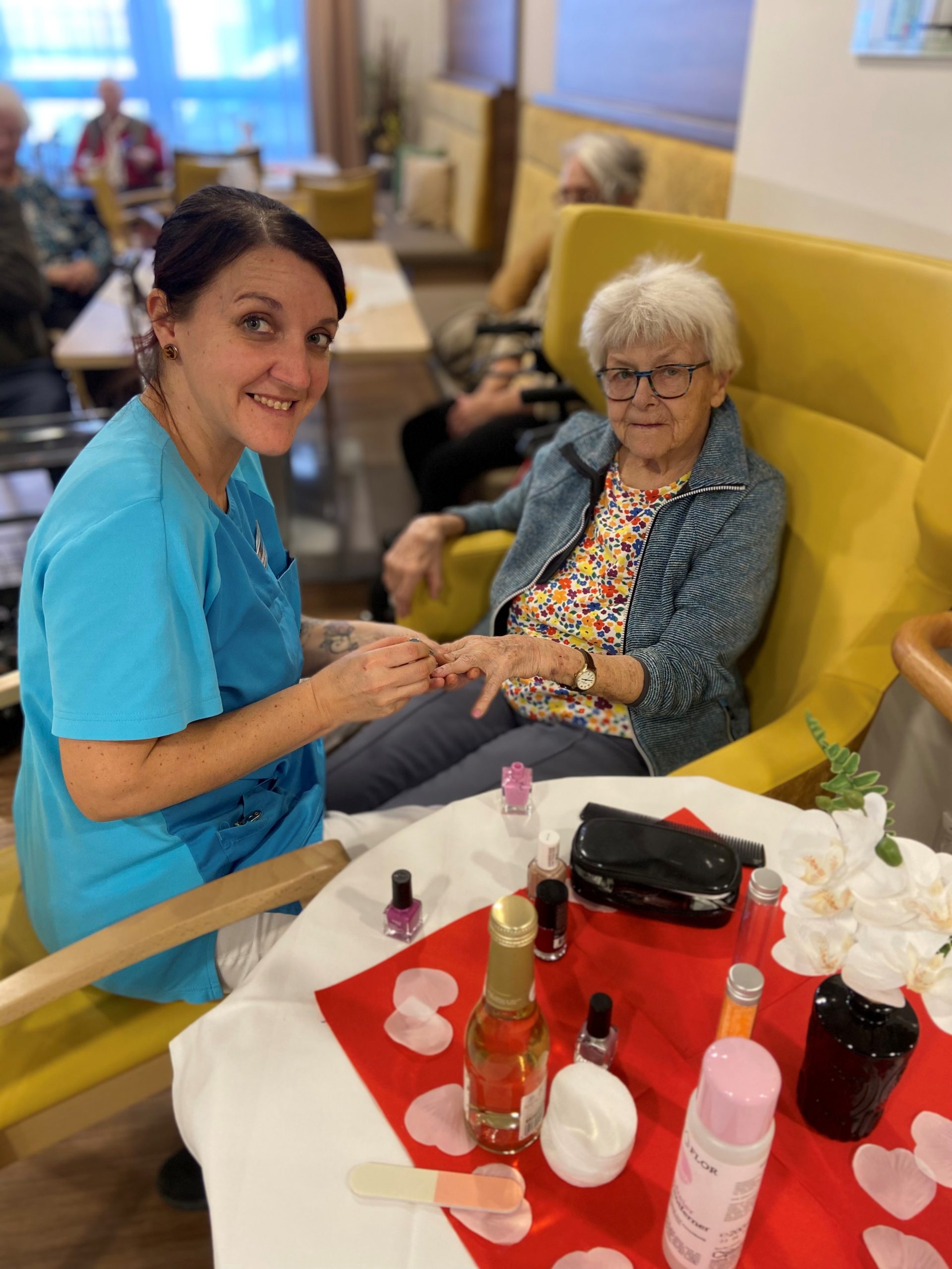 Kürzlich verwandelte sich das SeneCura Pflegezentrum Kalwang in eine gemütliche Wohlfühloase. Beim Wellnesstag konnten sich die Bewohner:innen eine Auszeit vom Alltag nehmen und sich in vollen Zügen verwöhnen lassen. Mit einem Glas Sekt-Orange in der Hand ließen sie sich nach Wunsch die Nägel lackieren, genossen wohltuende Handmassagen und verbrachten eine entspannte Zeit in angenehmer Gesellschaft. Der Wellnesstag sorgte für pure Entspannung und zufriedene Gesichter – es war ein rundum gelungener Tag voller besonderer Momente.