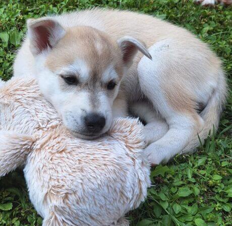 Frau Kager und ein Huskywelpe