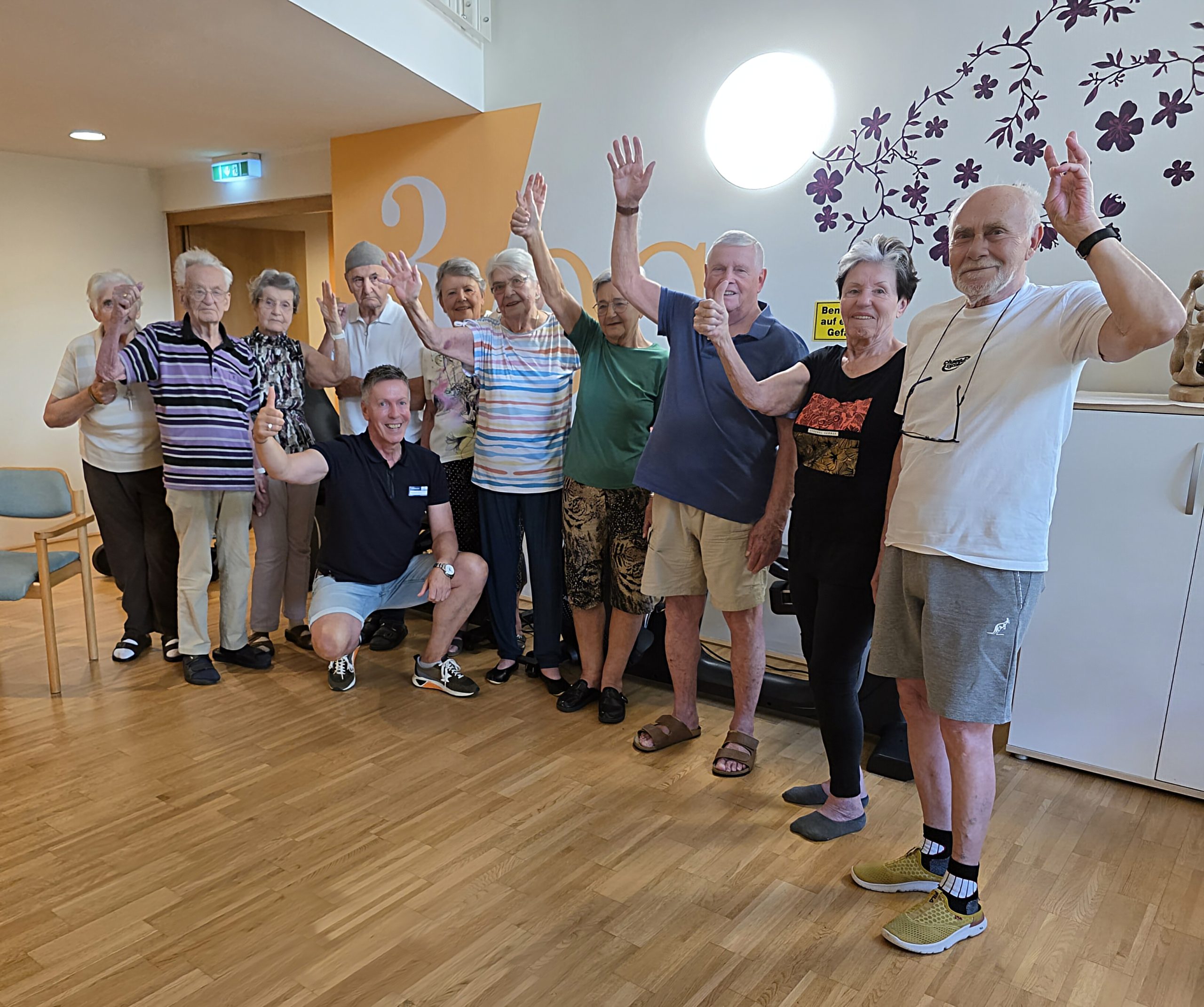 Wer rastet der rostet – das ist die Devise der Sportgruppe des SeneCura BePartments Graz-Lend. Das seniorengerechte Fitnesstraining wird schon seit vielen Jahren von Sporttrainer Siegfried Rumpold veranstaltet und auch immer wieder auf die Teilnehmer:innen abgestimmt und angepasst. Ein Mix aus Atemübungen, Pilates und Yoga machen die Trainingseinheiten immer interessant und spannend. Bewohnerin Agnes Macher, eine über 100-jährige Teilnehmerin meinte kürzlich „Seit über 8 Jahren bin ich schon dabei. Ab und zu ist es ein wenig anstrengend, aber jede Stunde zahlt sich aus.“