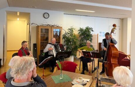 Am 06. März 2024 fand im SeneCura Sozialzentrum Laurentius-Park wieder das beliebte Wiener Kaffee statt. Diesmal sorgte das „Brazer Projekt“ mit bekannten Wiener Liedern für beste Unterhaltung. Die Bewohner:innen sangen und schunkelten begeistert mit und genossen die gemütliche Atmosphäre. Ein großes Dankeschön geht an die Musiker:innen des „Brazer Projekt“ für ihren schwungvollen Auftritt. Ebenfalls bedanken möchte sich das SeneCura Sozialzentrum Laurentius-Park bei den freiwilligen Helfer:innen unter der Leitung von Carmen Reiter, Maria Rinner und Fardeen Hashemi sowie den Praktikantinnen Saham und Lea. Alle haben dazu beigetragen, dass dieser Nachmittag für die Seniorinnen und Senioren zu einem unvergesslichen Erlebnis wurde.