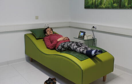 Unsere Bewohnerin auf der wohltuenden Klangliege
