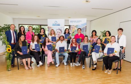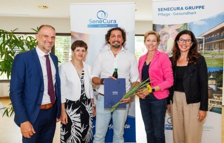 Zur Zertifikatsverleihung im Laurentius-Park Bludenz waren zahlreiche Gäste gekommen – darunter Vertreter:innen des Landes Vorarlberg, der EMG Akademie, der Connexia, der SeneCura Gruppe sowie Angehörige und Kolleg:innen der Absolvent:innen. Eröffnet wurde der Festakt von Daniel Siegl, SeneCura Regionaldirektor für Tirol und Vorarlberg, mit wertschätzenden Worten an die Absolvent:innen: „Was ihr in den letzten Monaten geleistet habt, ist beeindruckend: Denn Pflege ist nicht nur ein Beruf. Pflege ist eine Haltung. Eine Haltung des Mitgefühls, der Verantwortung, des Zupackens – gerade dann, wenn andere Unterstützung brauchen.“ Gemeinsam mit Landesrätin Martina Rüscher, Direktorin der EMG Akademie Manuela Hammer und Vizebürgermeisterin Andrea Mallitsch würdigte er die Leistungen der Teilnehmenden. Der Lehrgang wurde speziell für die Region entwickelt und durch die enge Zusammenarbeit mit dem AMS, dem Land Vorarlberg, der Connexia und der EMG Akademie ermöglicht. Teilnehmer:innen aus den SeneCura Häusern in Bludenz, Hohenems, Herrenried und Lauterach absolvierten eine fundierte Ausbildung – praxisnah, zielgerichtet und mit Blick auf die Anforderungen im Pflegealltag.
