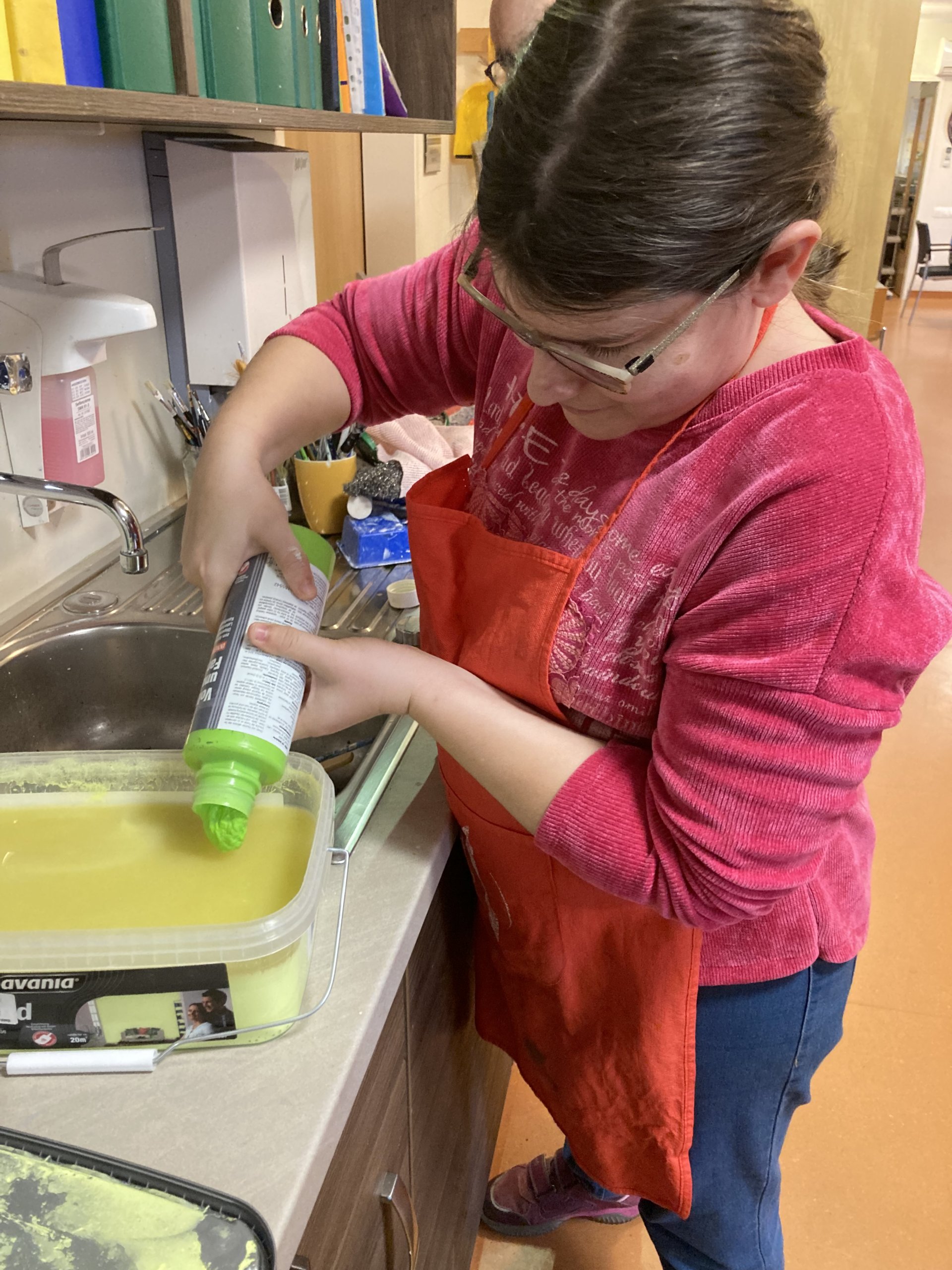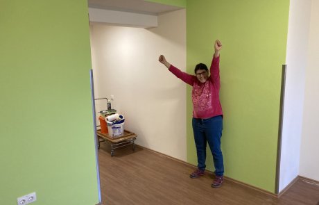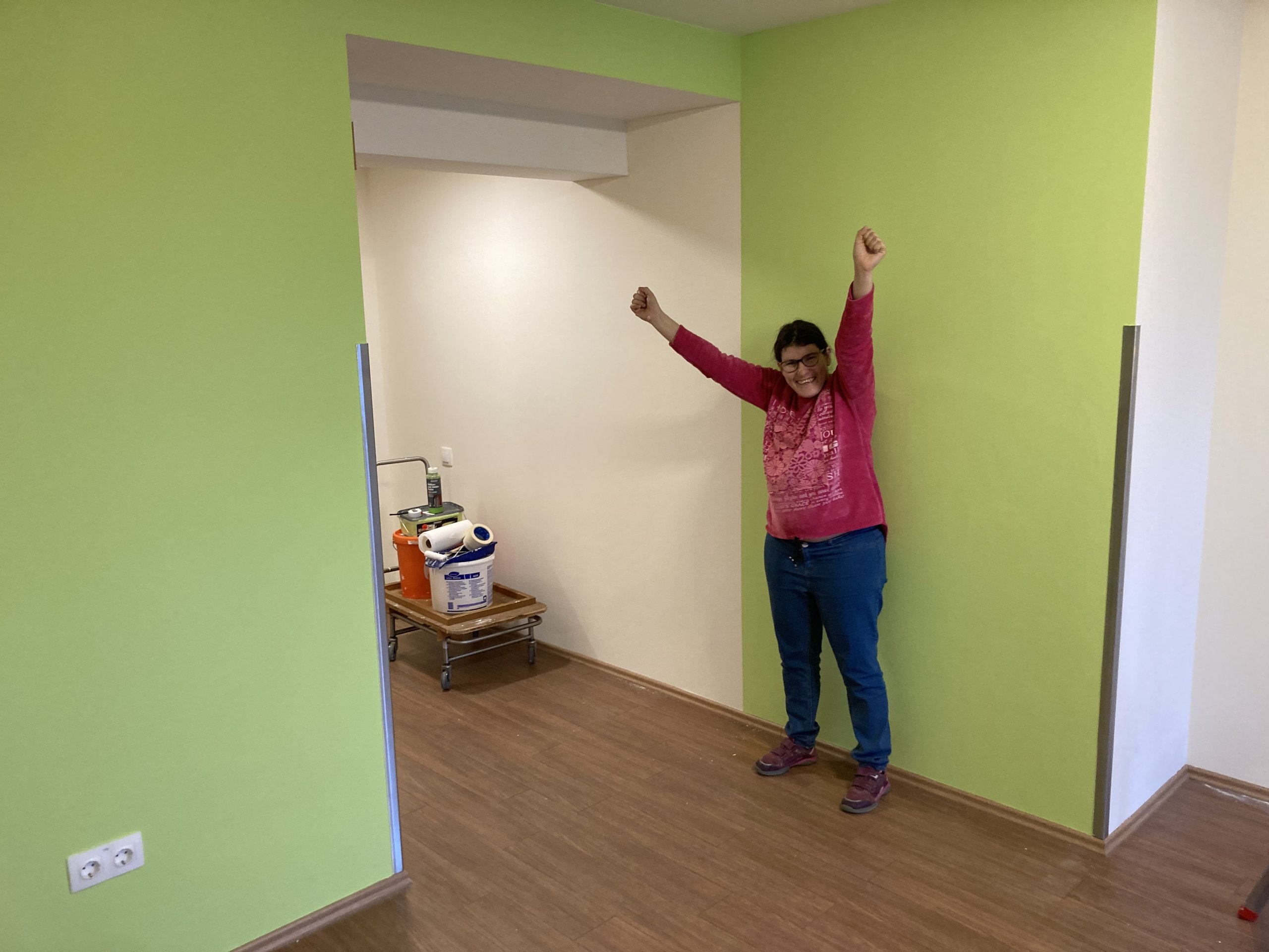 Gemeinsam mit Nicole Seywerth, ihrer Betreuerin aus der Kreativ-Werkstatt, malte sie ihr Zimmer aus und wählte dafür ein wunderschönes Grün aus.