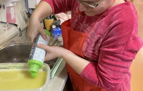Die Bewohner:innen in der Wohngemeinschaft für Menschen mit Behinderungen wohnen zumeist viele Jahre, oft mehrere Jahrzehnte in der Wohngemeinschaft. Eine persönliche Gestaltung des eigenen Zimmers hat daher einen hohen Stellenwert. Sie sollen sich im Haus „daheim“ fühlen können – da ist es wichtig, die Einrichtung nach dem persönlichen Geschmack auswählen zu dürfen. Zum Glück steht meist ein fleißiges und geschicktes Team aus Angehörigen, Betreuungspersonen und Haustechnikern fürs Zusammenbauen zur Verfügung. Das eigene Zimmer jedoch selbst ausgemalt zu haben, macht stolz und richtig Lust darauf, noch viele Jahre hier zu verbringen.