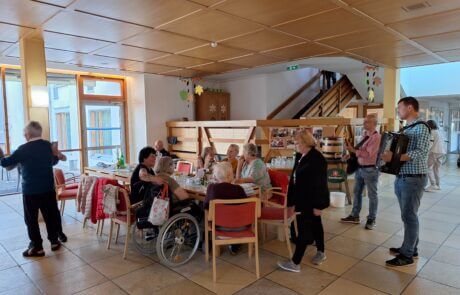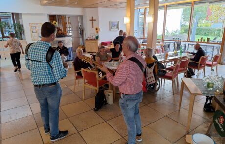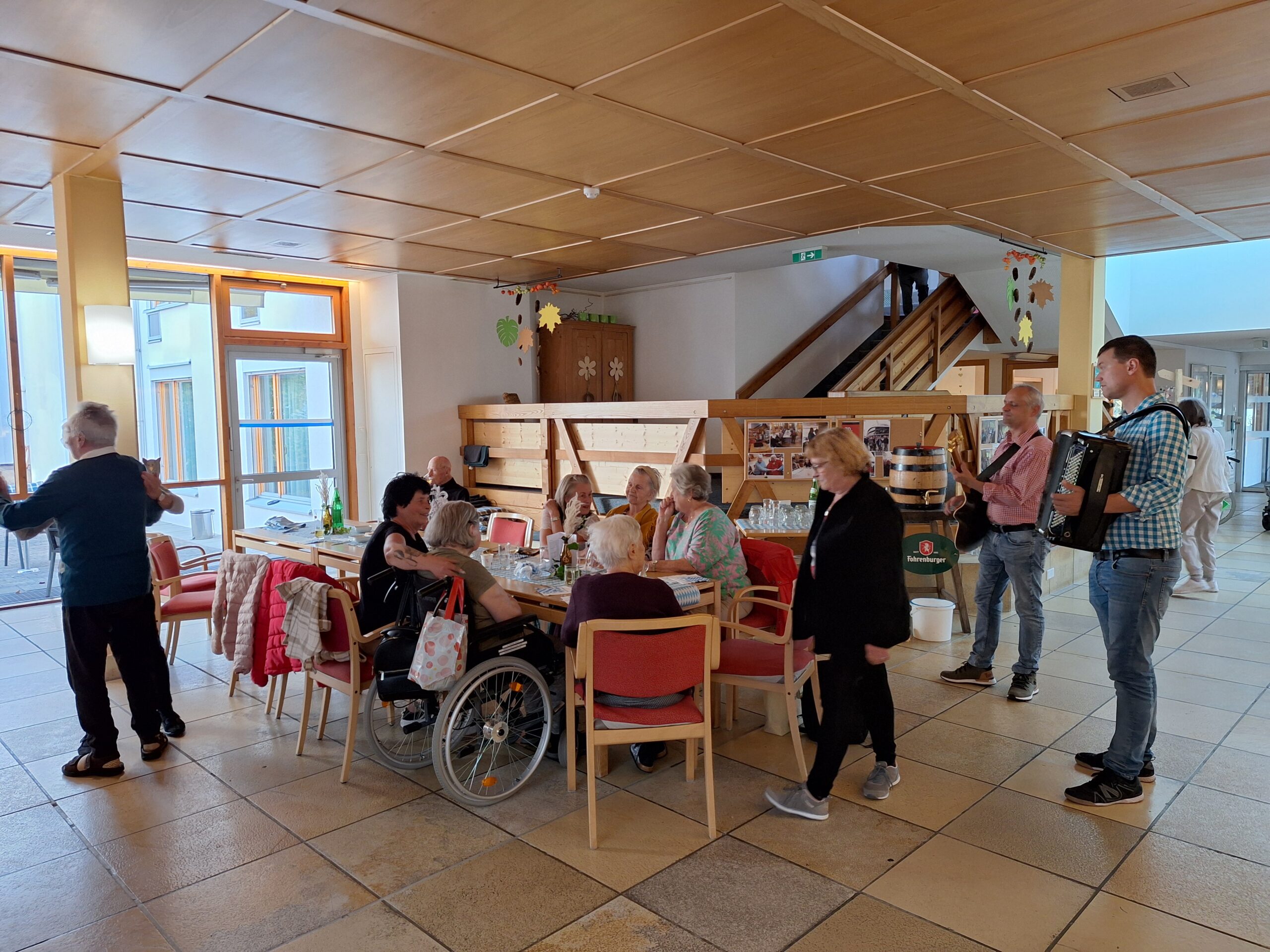 Kürzlich wurde im SeneCura Sozialzentrum Hohenems das diesjährige Oktoberfest gefeiert. Für die richtige Stimmung sorgten „Walserfeger“ mit ihrer Msik. Es dauerte nicht lange, bis geschunkelt und getanzt wurde. Ganz traditionell gab es heuer auch ein Bierfass – den Fassbieranstich übernahm Hausleitung Alexander Welte. Auch kulinarisch ließ das Fest keine Wünsche übrig: Das Küchenteam servierte Obatzda und anschließend Weißwürste mit Brezel und süßem Senf. Alle genossen das Fest sehr!