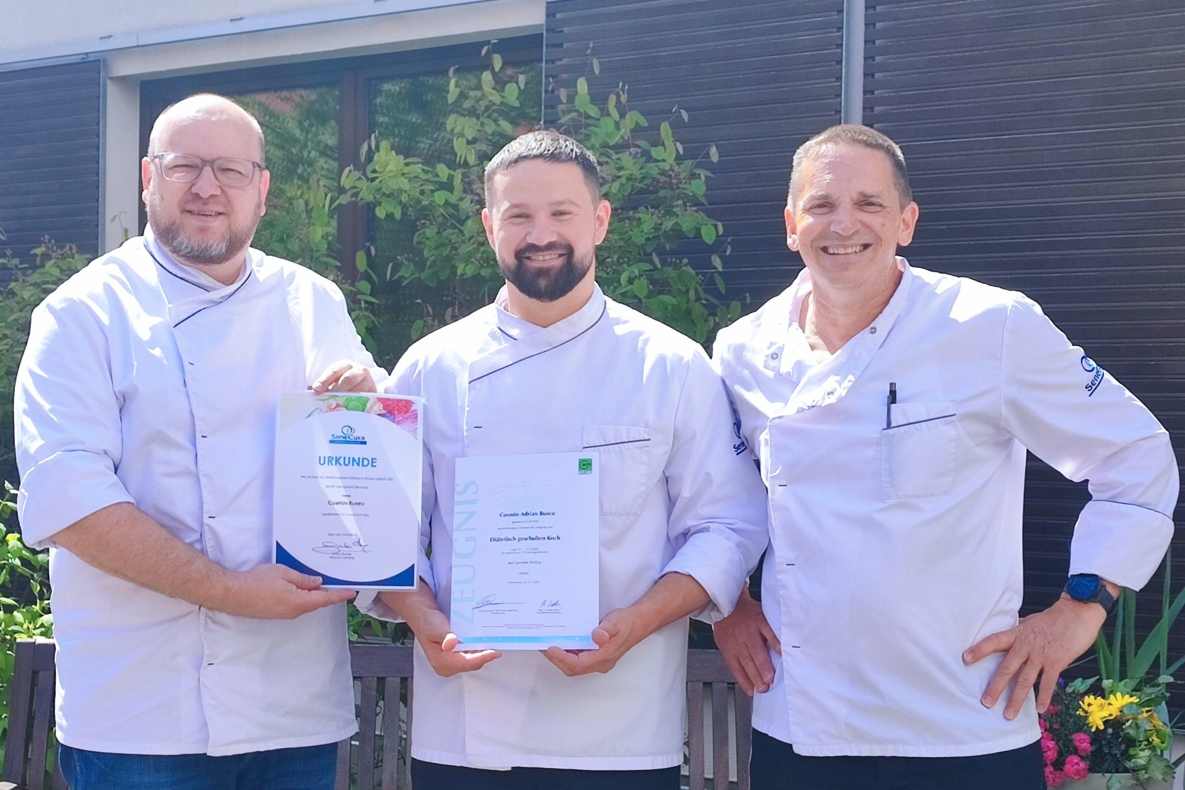 Wir gratulieren herzlich Cosmin Buscu, dem stellvertretenden Küchenleiter aus dem SeneCura Sozialzentrum Hard sowie seinem Kollegen Dominik Frank aus den SeneCura Sozialzentren Hohenems und Herrenried zu diesem bedeutenden Meilenstein in ihrer beruflichen Laufbahn.