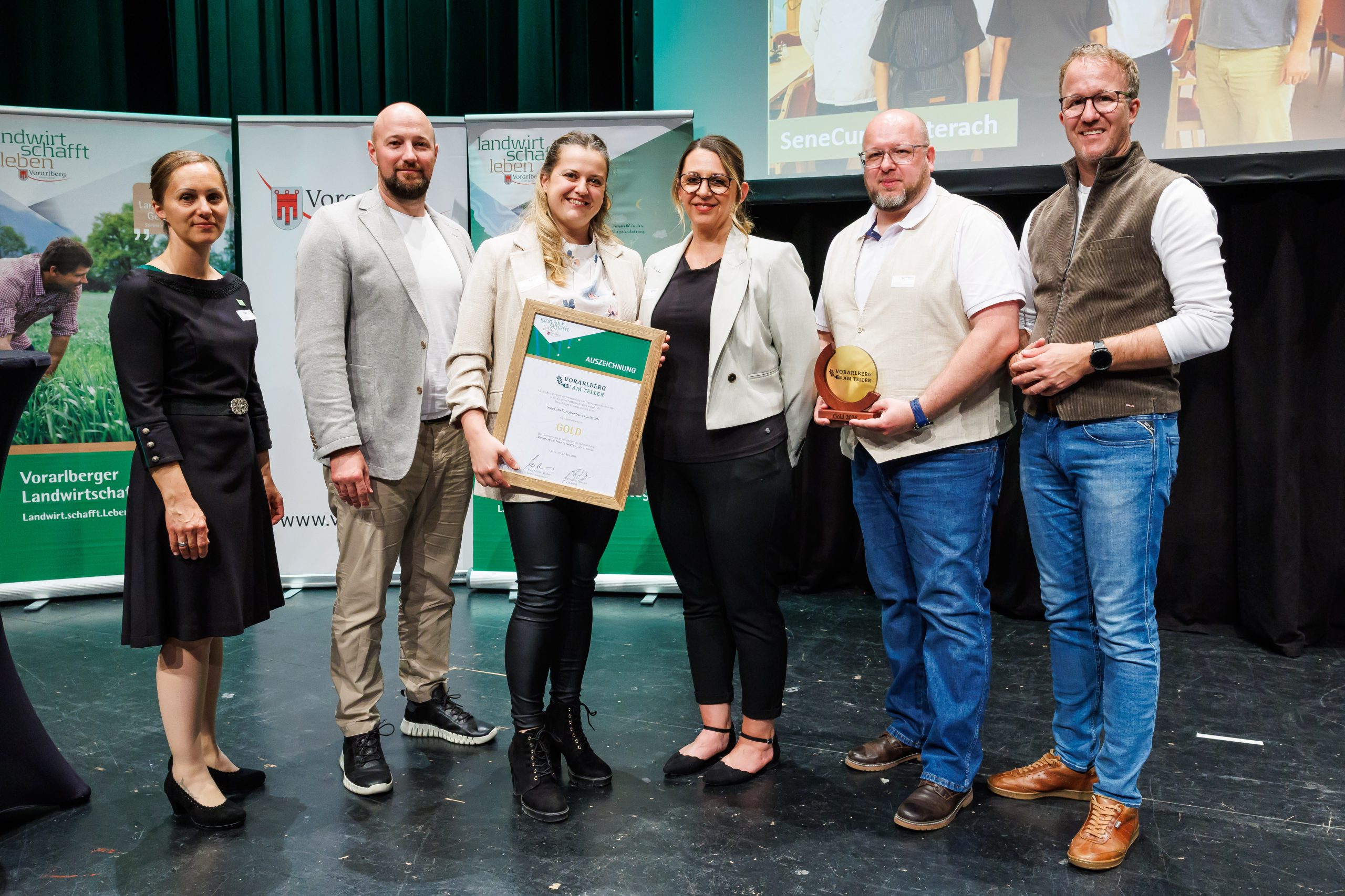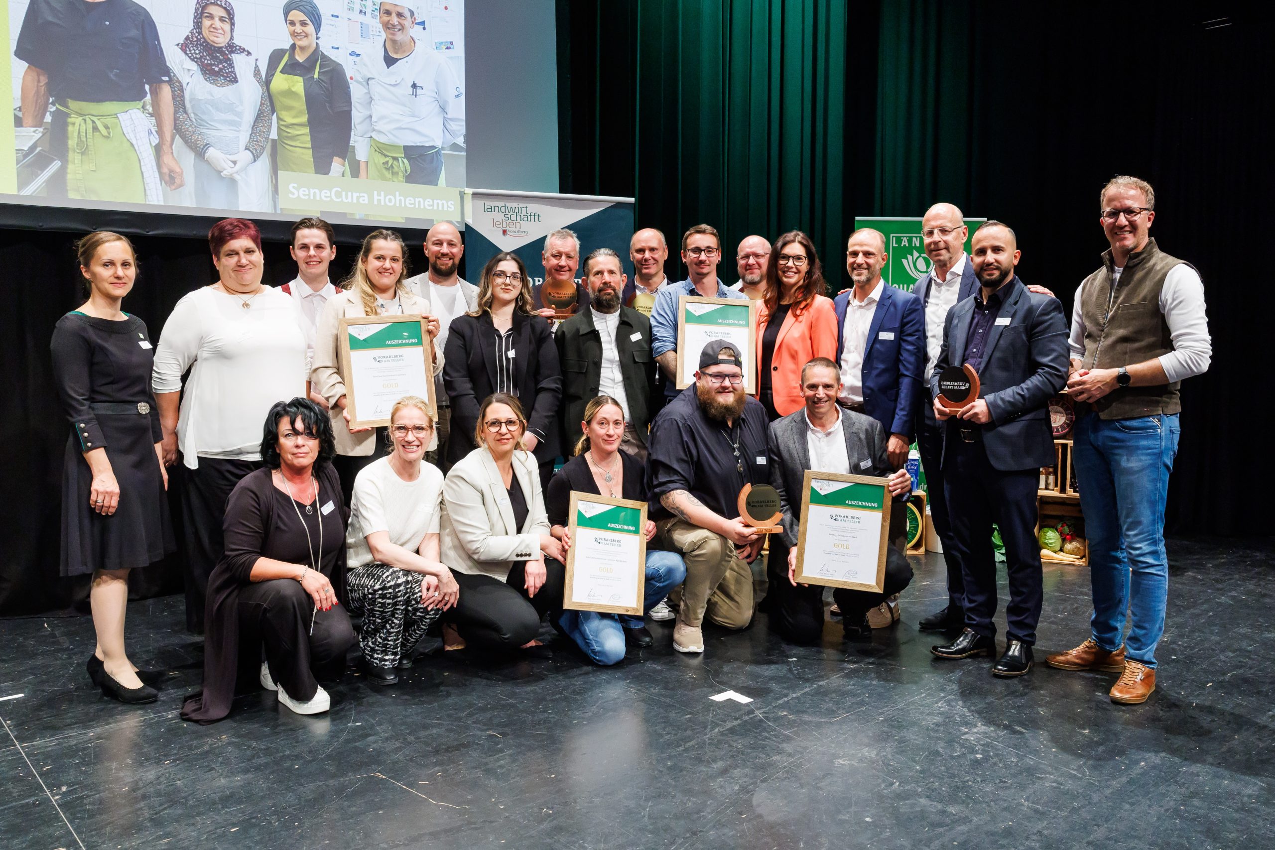 Die fünf SeneCura Sozialzentren in Vorarlberg haben erneut ihre Vorreiterrolle in Sachen regionaler und nachhaltiger Kulinarik unter Beweis gestellt: Bei der diesjährigen Verleihung des Qualitätssiegels „Vorarlberg am Teller“ wurden alle fünf SeneCura Häuser in Vorarlberg ausgezeichnet – das Sozialzentrum Dornbirn durfte sich über die höchste Auszeichnung in Platin freuen, die Häuser in HardHohenemsLaurentius-Park Bludenz und Lauterach wurden jeweils mit Gold prämiert. Damit würdigt die Vorarlberger Landwirtschaftskammer das kontinuierliche Engagement von SeneCura für eine umweltbewusste, qualitativ hochwertige und vor allem regionale Verpflegung.